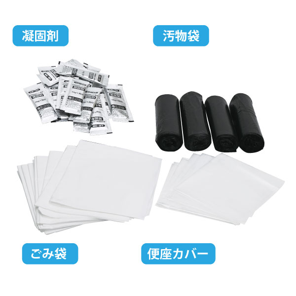 ・セット内容/凝固剤×240回分、汚物袋×240枚、ゴミ袋×24枚、便座カバー×12枚
