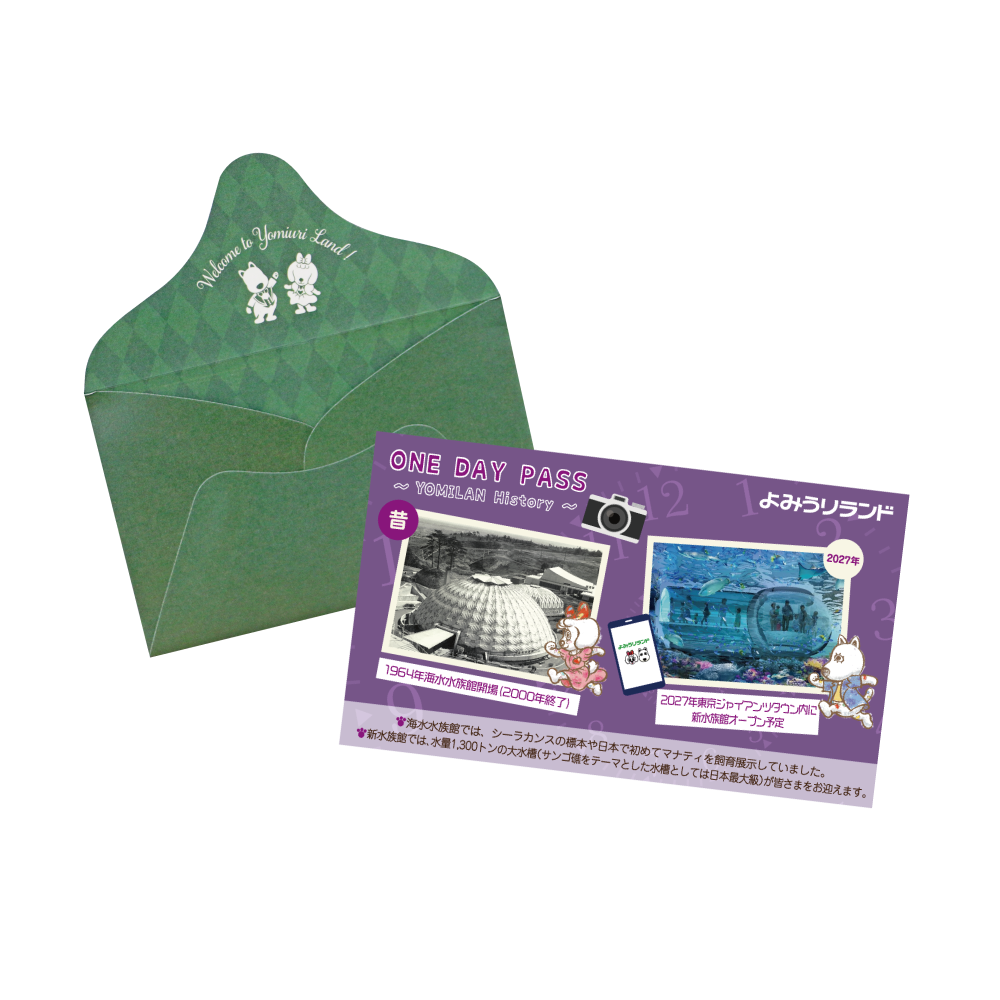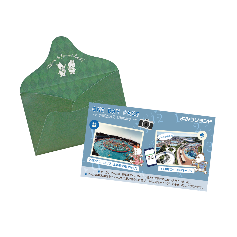 その歴史を記念し、オープン月と同じ3月に、昔と今のよみうりランドをデザインした特別仕様のワンデーパスが登場しました。