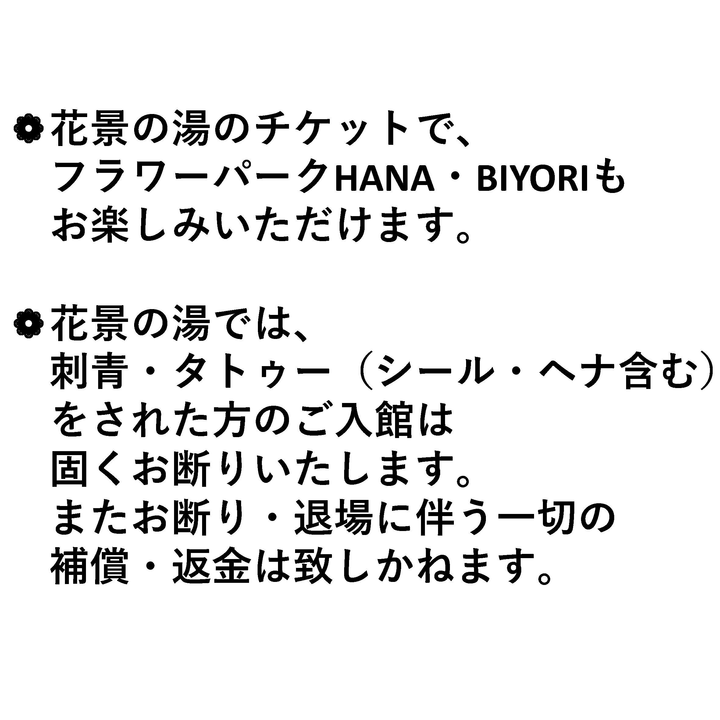 ・本チケットはHANA・BIYORI内にある花景の湯入館チケットです。